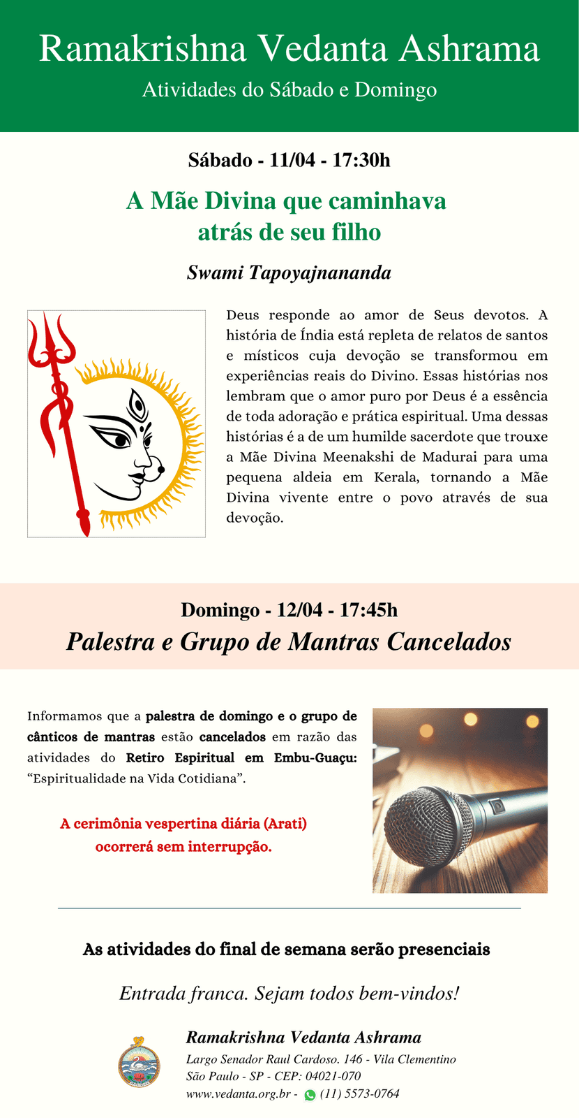 Palestras Semanais Ramakrishana Vedanta Ashrama