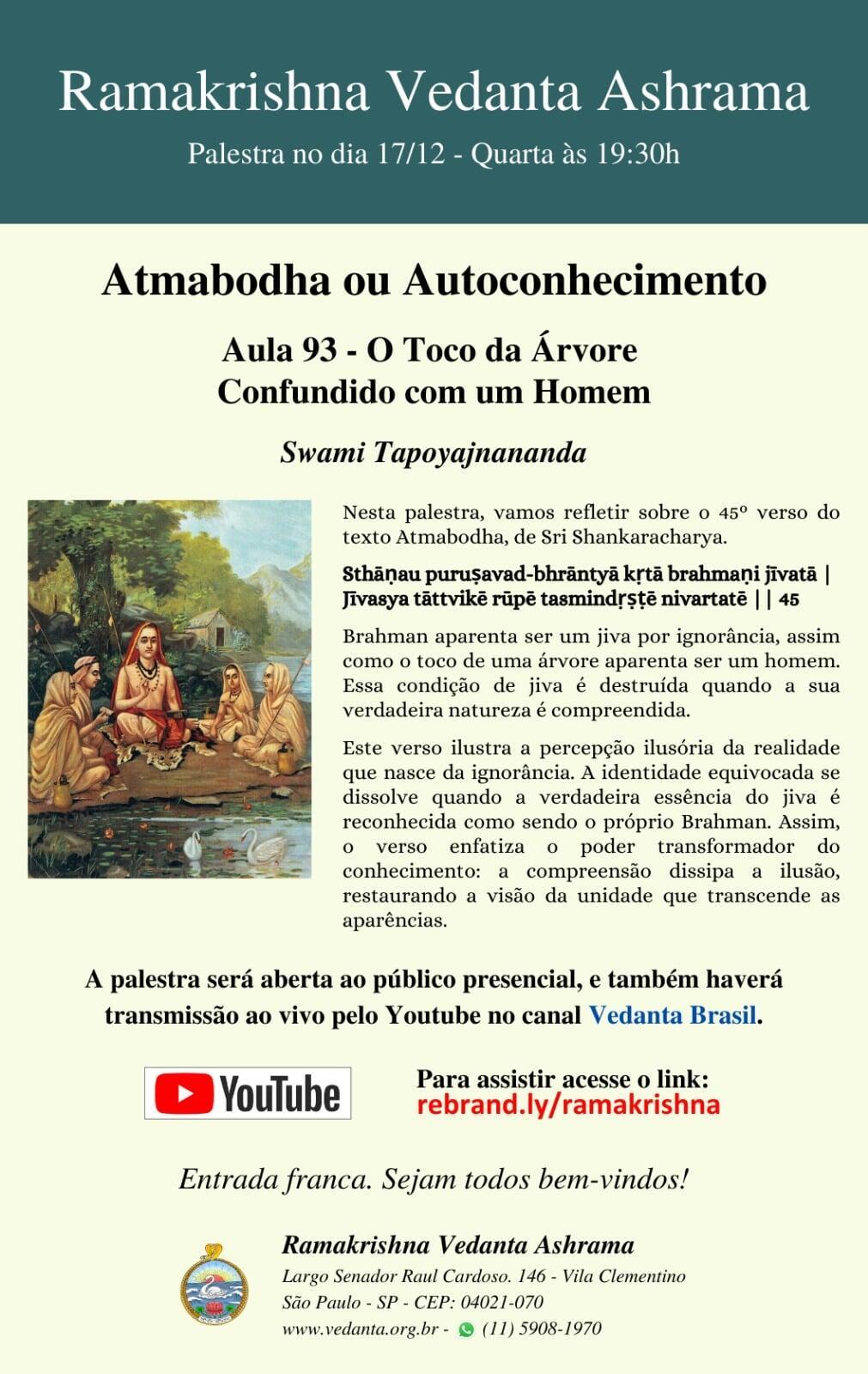 O Ramakrishna Vedanta Ashrama de São Paulo foi fundado em 1974 e oficialmente afiliado à Ordem Ramakrishna, com sede em Belurmath, Índia, em 1999.
