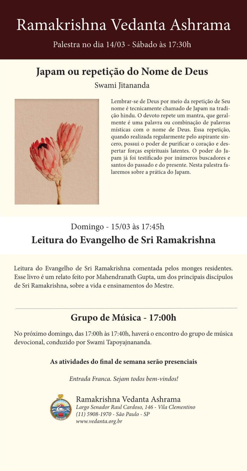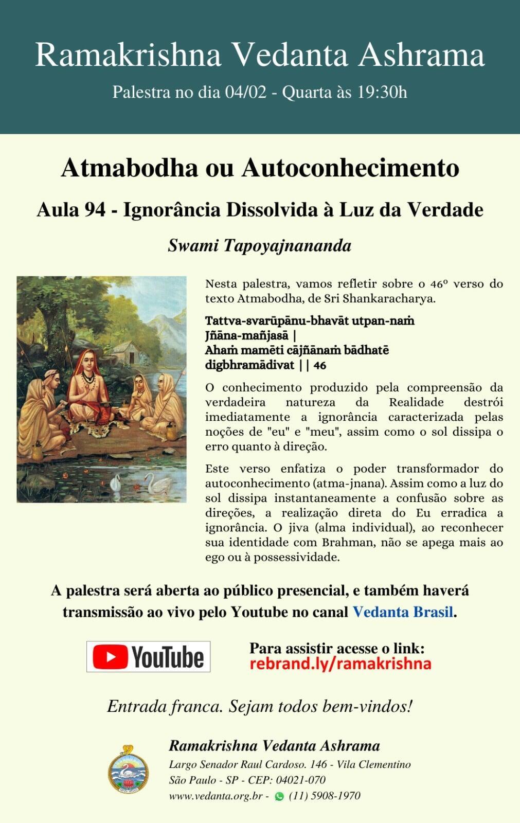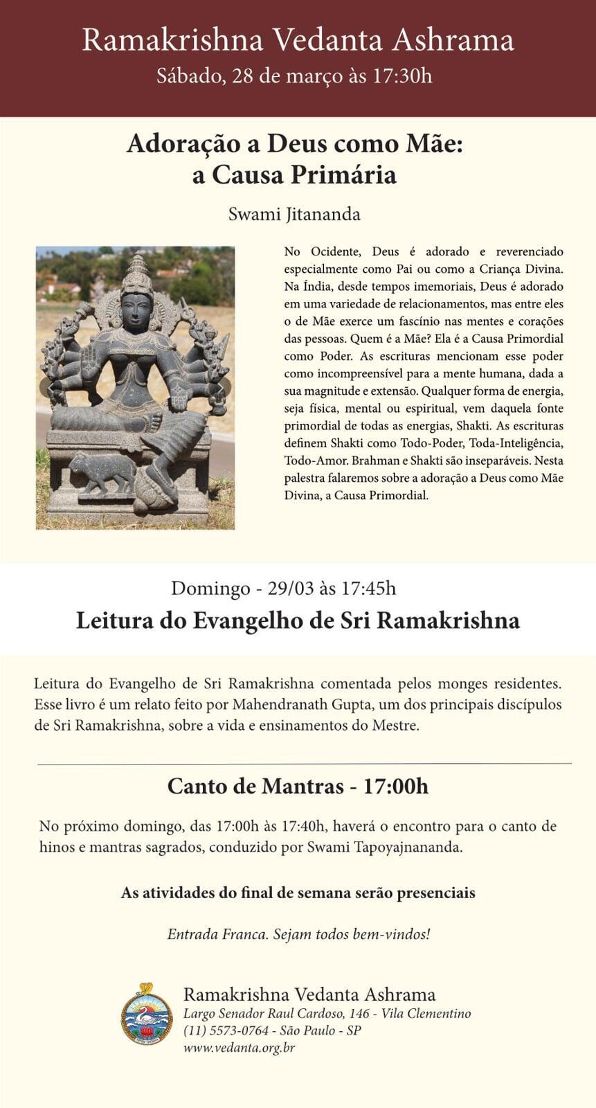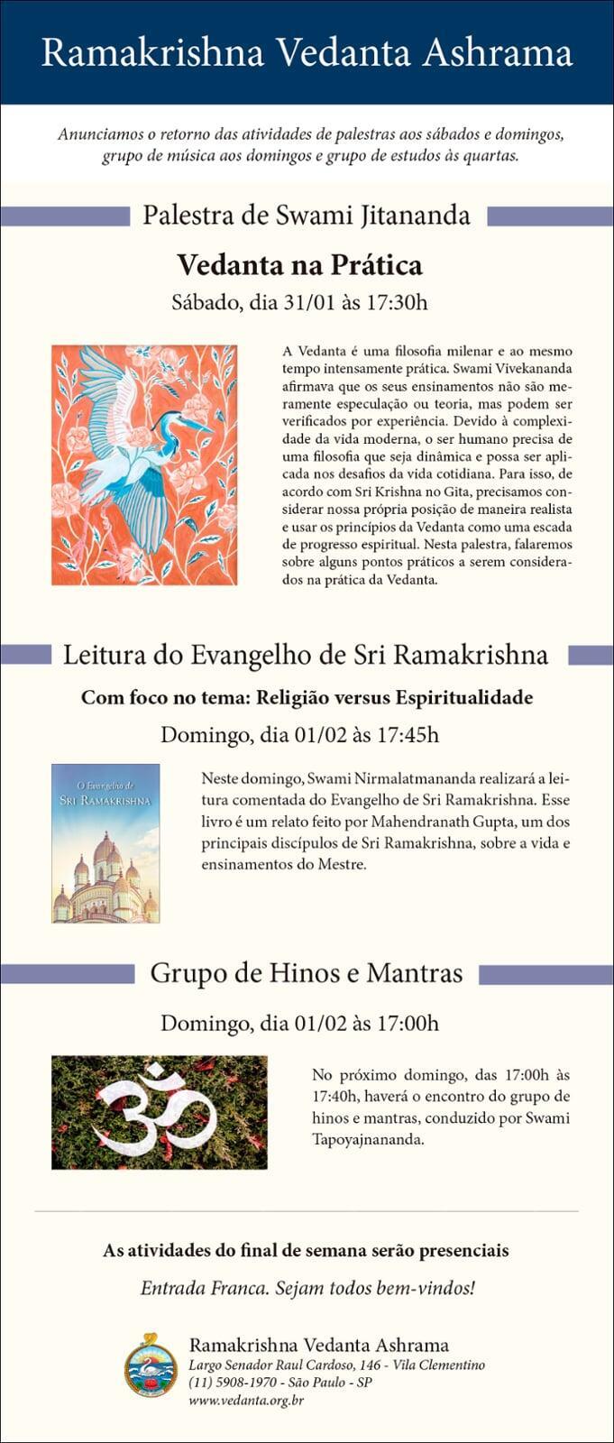O Ramakrishna Vedanta Ashrama de São Paulo foi fundado em 1974 e oficialmente afiliado à Ordem Ramakrishna, com sede em Belurmath, Índia, em 1999.